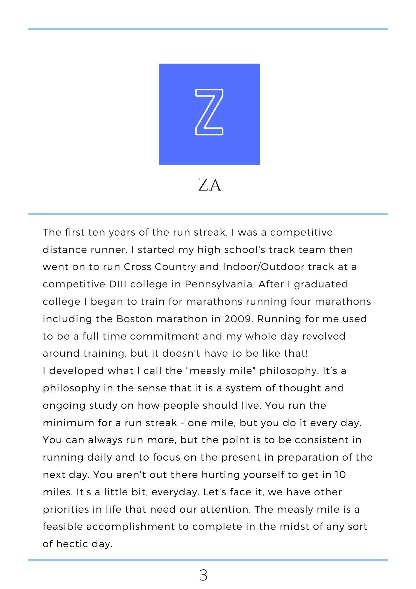 Introducing "The Z to A Guide to a Daily Run" – an extraordinary e-book written by Eliza Miron, better known as Za, a dedicated runner who has conquered running every day for over 21 years.